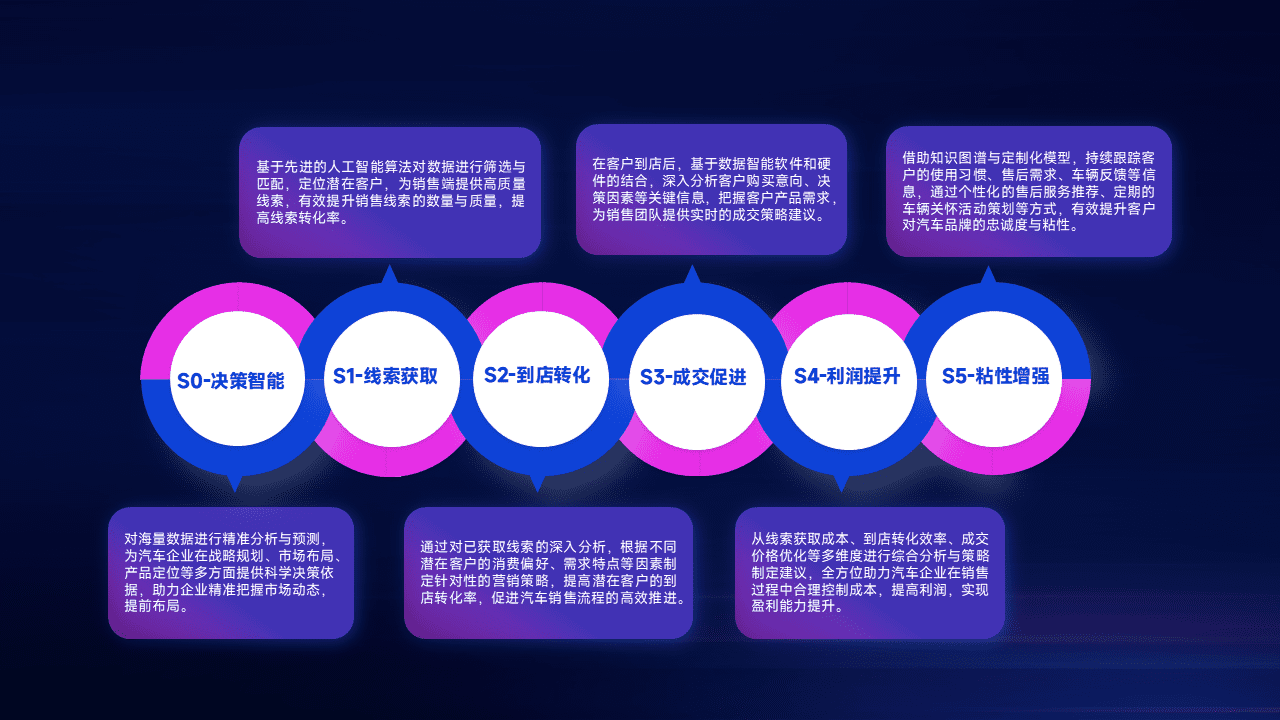 通过拓宽潜在客户来源、、、优化线索分配并提高到店转化率,,以增强销售效率。。。同时,,,,利用线索数据不断优化分析模型,,有效提升转化率,,扩大营销影响力。。。。